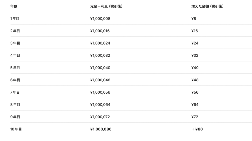 金利はメガバンクの普通預金の平均で計算しています『0.001%』